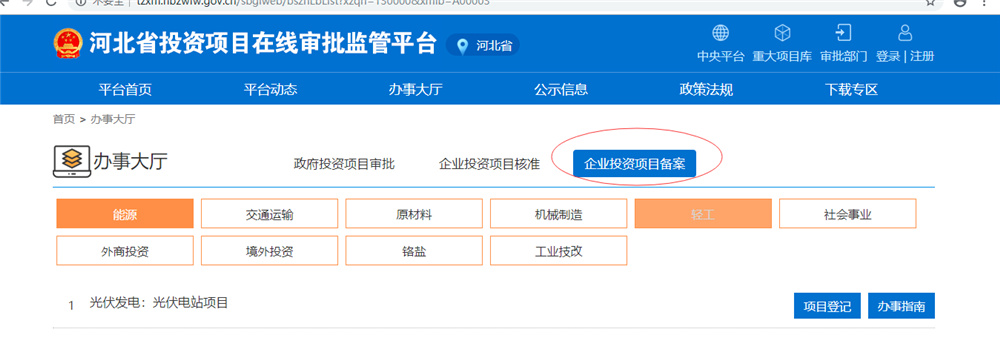 1.備案登錄“全國投資項目在線審批監管平臺http://www.tzxm.gov.cn/